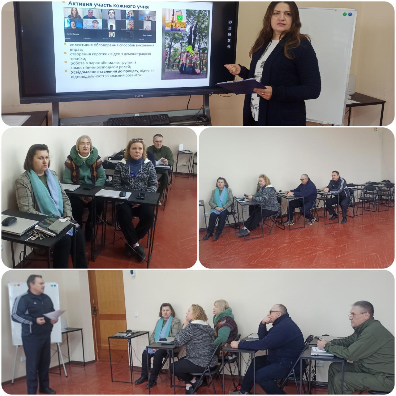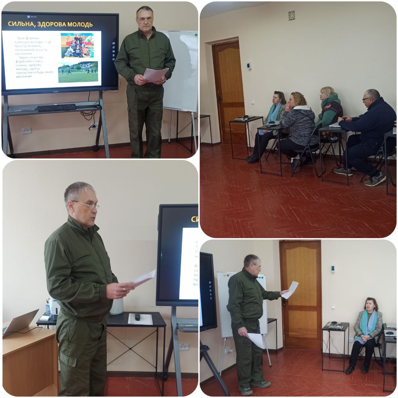 Під час засідання заслухали доповіді Тетяни КАСАЛАП на тему «Методи навчання на уроках фізичної культури в умовах воєнного стану» та Андрія ЖУРНЯЄВА на тему «Сучасний підхід до викладання предмета “Захист України” в умовах воєнного стану».