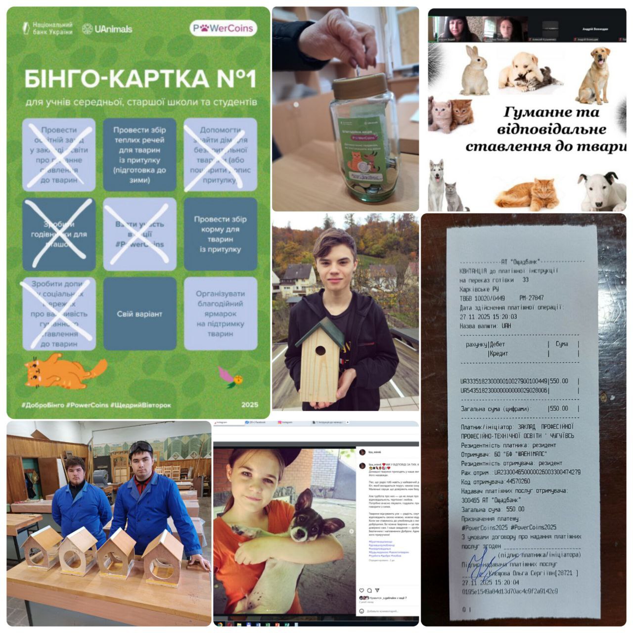 Студенти та працівники Закладі професійної (професійно-технічної) освіти «Чугуївський регіональний центр професійної освіти Харківської області» взяли участь акції «PowerCoins» та освітньому челенджі «ДоброБінго: допомагаємо тваринам» організованих Національним банком України та UAnimals (організацією, що рятує тварин та довкілля від війни та людської жорстокості)