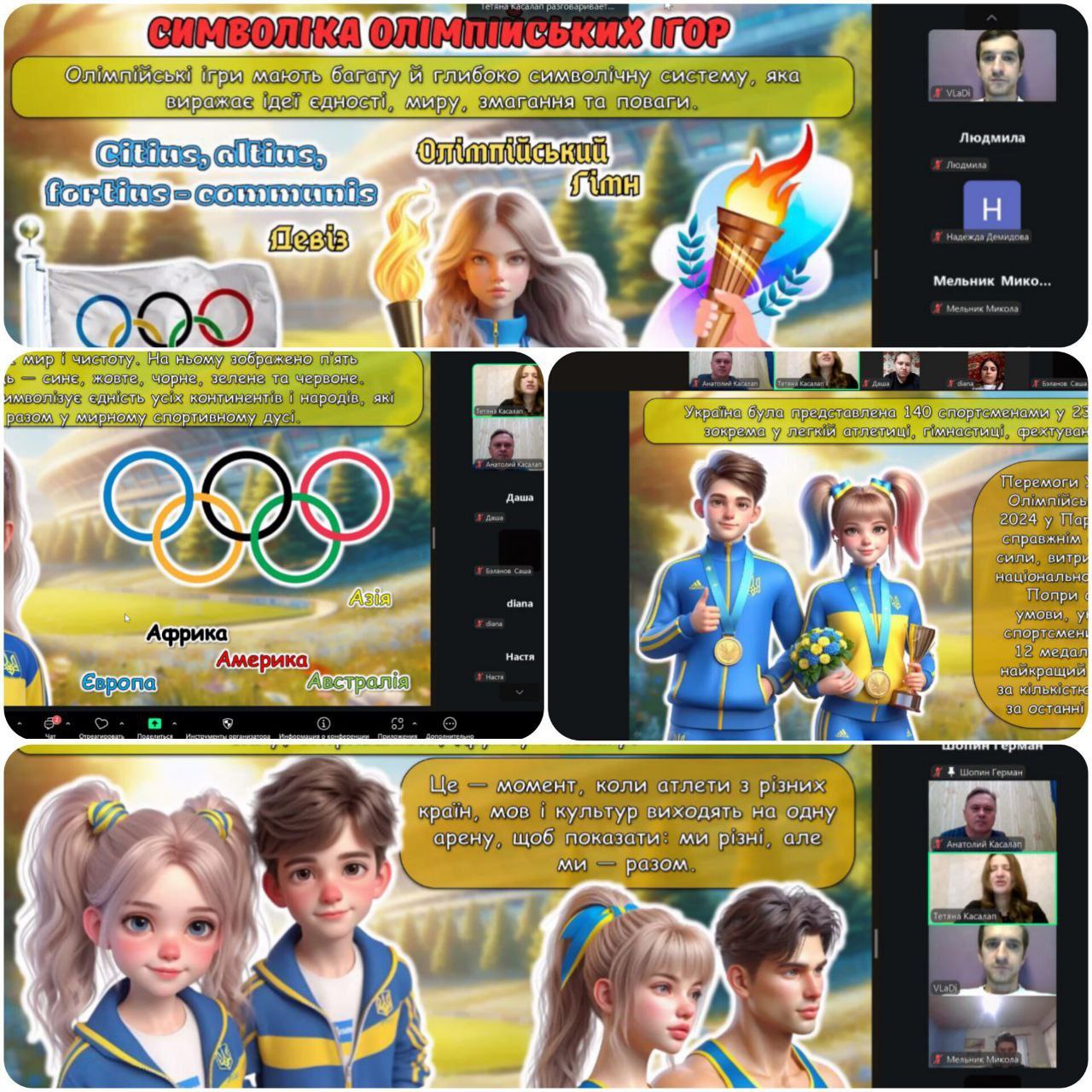 Викладачі фізичної культури під керівництвом Анатолія КАСАЛАПA підготували для здобувачів освіти пізнавальну інформацію про історію Олімпійських ігор, символіку та логотипи, а також участь українських спортсменів в Олімпійських іграх періоду незалежності.