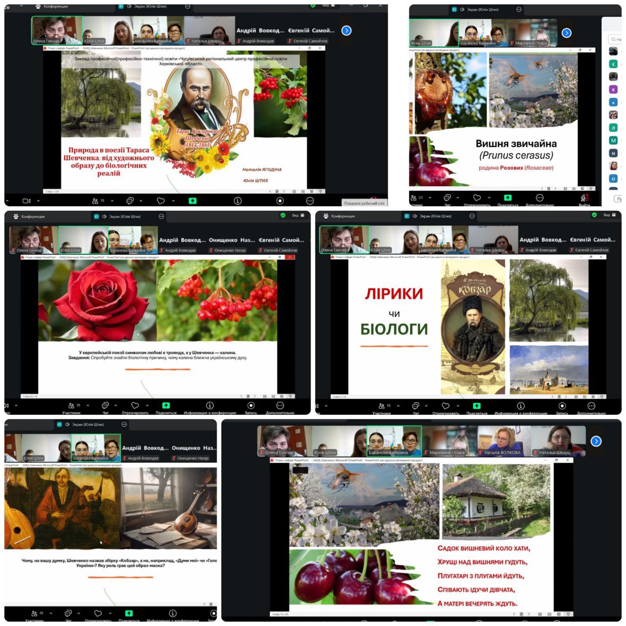 03.03.2026 в Закладі професійної (професійно-технічної) освіти «Чугуївський регіональний центр професійної освіти Харківської області» з нагоди 212 річниці від Дня народження Тараса Шевченка відбувся інтегрований відкритий захід для учнів 1-го курсу на тему «Природа в поезії Тараса Шевченка: від художнього образу до біологічних реалій». Студенти змогли відчути любов Тараса Шевченка до природи рідної землі, зрозуміли, що поезія Великого Кобзаря – це документальна фіксація української біогеографії та фенології